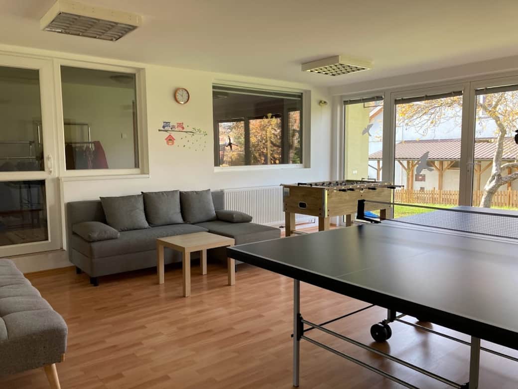 Myslíme aj na potreby rodín s deťmi – na požiadanie radi pripravíme detskú postieľku, nočník, stupienok či jedálenskú stoličku. Obľúbeným miestom našich hostí je veľká presklená herňa, ktorá ponúka množstvo možností na zábavu aj oddych. Nájdete tu pingpongový stôl, stolný futbal, šípky, ale aj priestor na spoločenské hry či relaxáciu. Spoločné priestory dopĺňa úložný priestor na bicykle, lyže či gril. Samozrejmosťou je bezplatné parkovanie priamo pri objekte a Wi-Fi pripojenie v celom areáli.